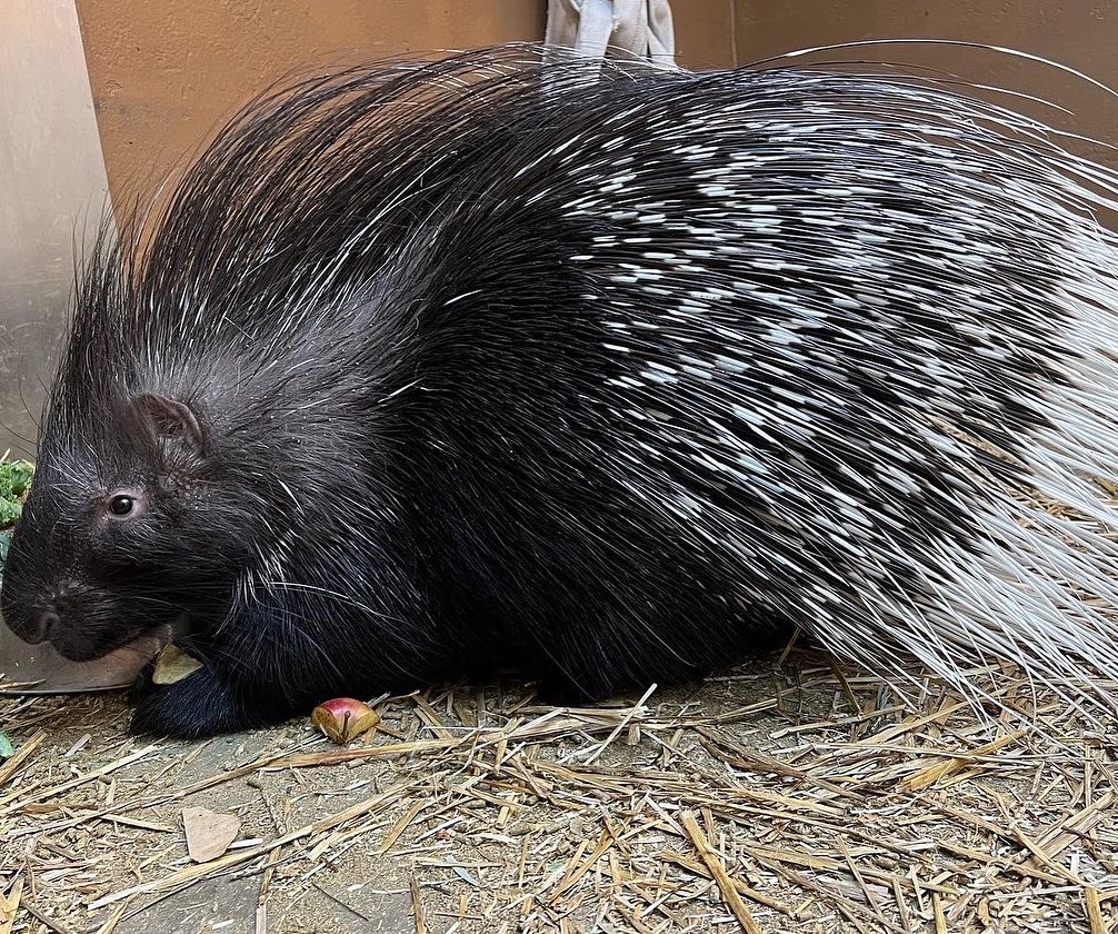 Bintu is a veggie-loving porcupine with a soft spot for yams, peppers, and zucchini.  He lives for keeper time and never turns down a good scratch.  Bintu is a gentle giant, but he'll proudly show off those quills if something startles him!
